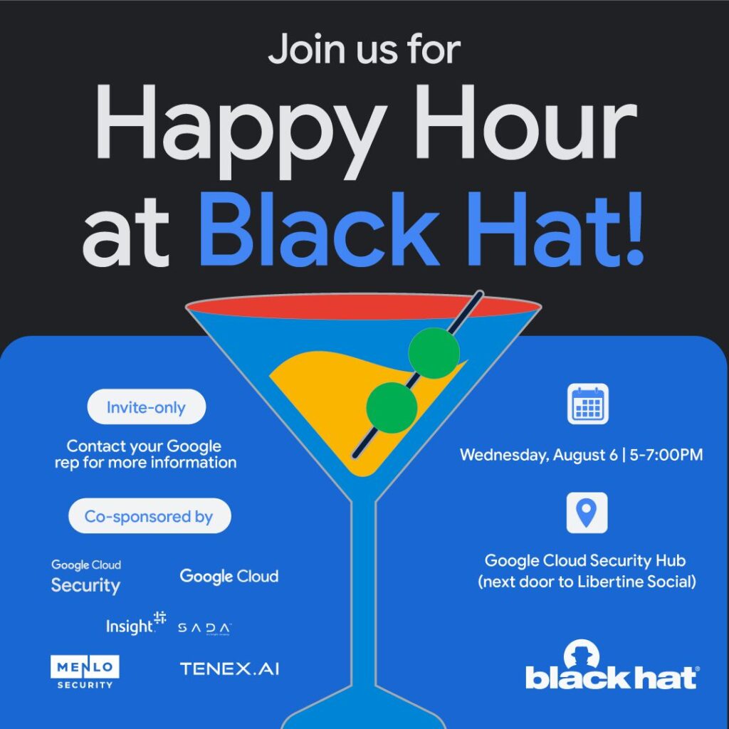 - Unwind and connect at Black Hat 2025! Join us for Happy Hour with Google Cloud Security on Wednesday, August 6, from 5:00 PM to 7:00 PM PST.
