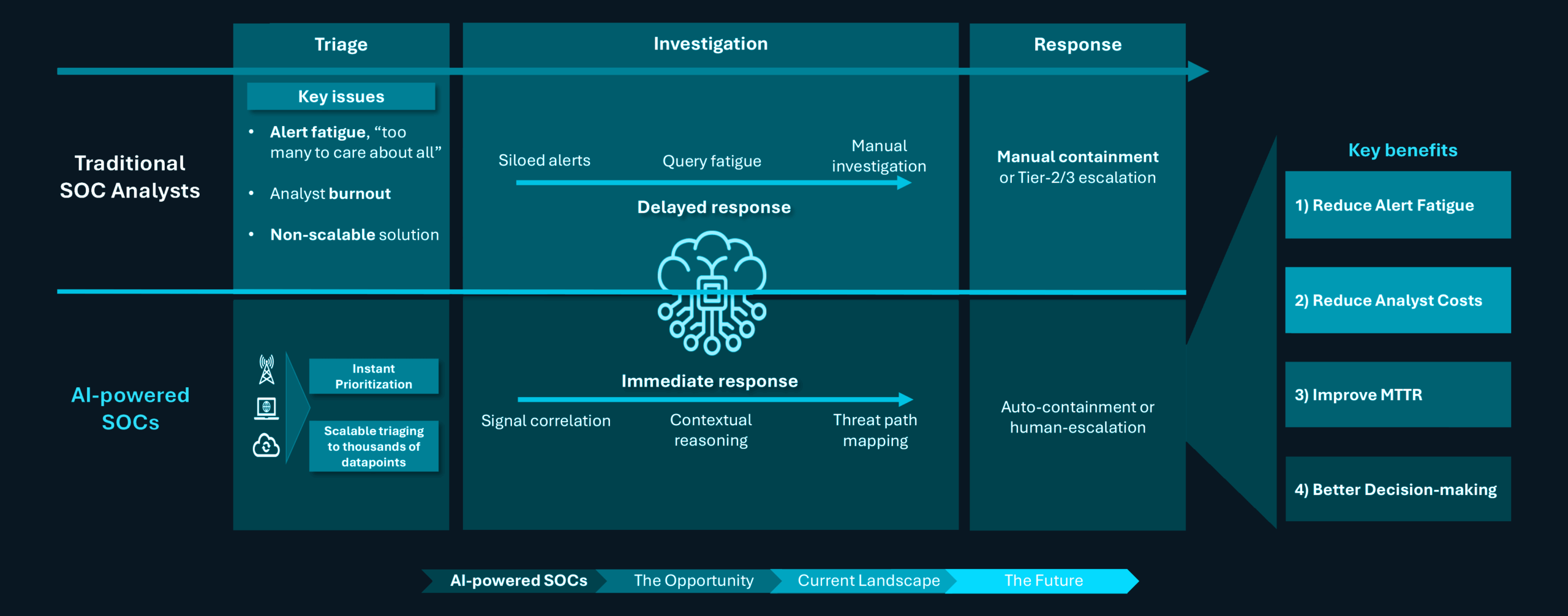 This marks the first cybersecurity category where AI replaces human decision-making at scale, making GenAI a foundational technology for the next $100B in SOC transformation.