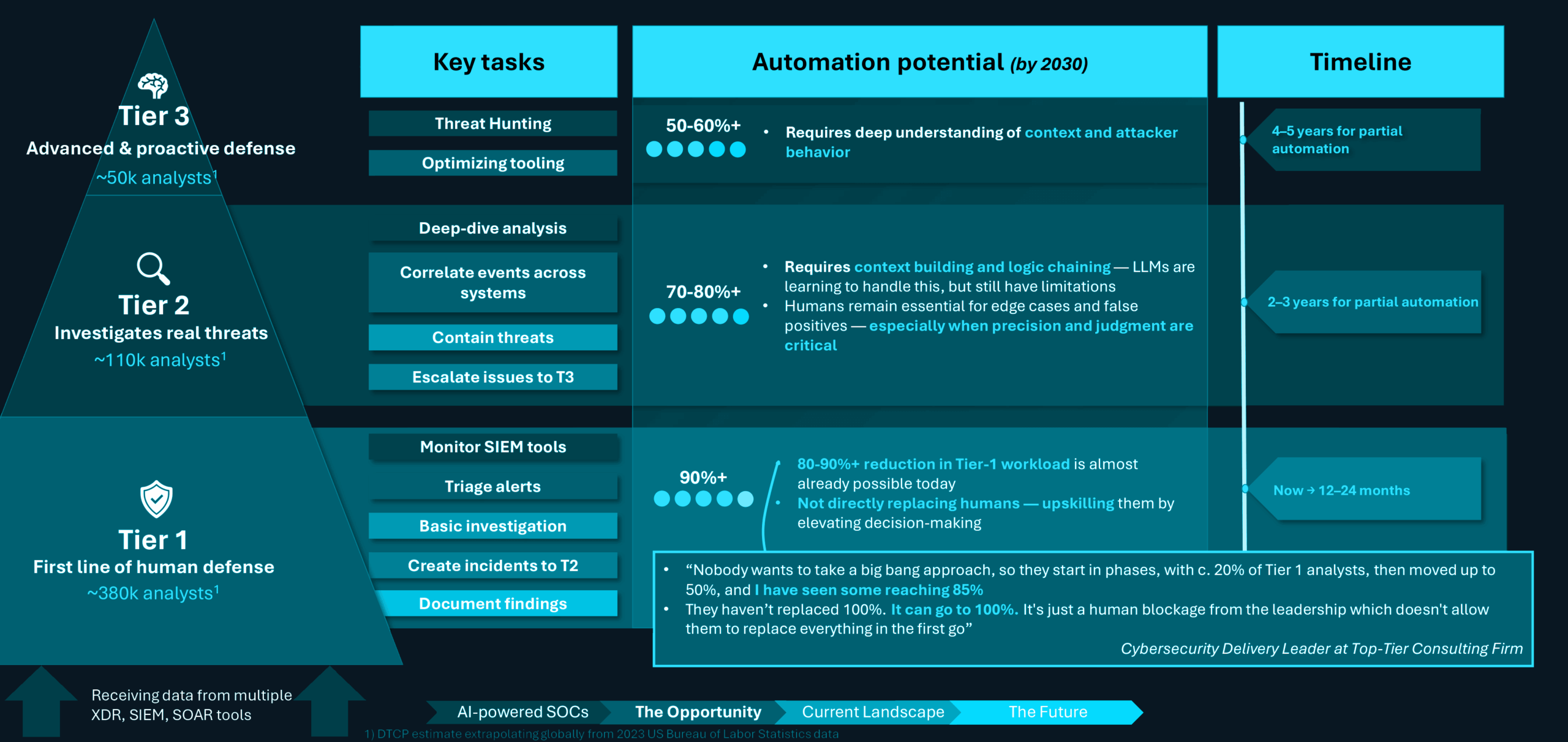 By 2030, we expect full or partial automation across the entire SOC stack, allowing human analysts to focus on high-value, strategic threats.